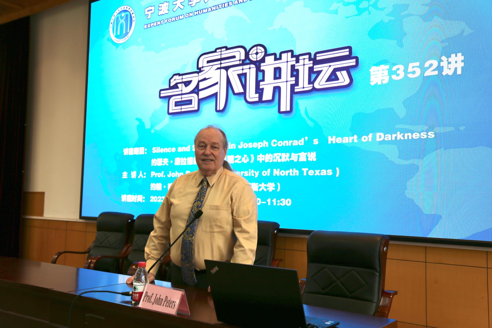 2023523日上午,应啪啪啦 的邀请,美国北德克萨斯大学杰出教授约翰·彼得斯(John Peters)为啪啪啦 师生作了题为“约瑟夫·康拉德的小说《黑暗之心》中的沉默与言说”(Silence and Speaking in Joseph Conrad's Heart of Darkness)的学术报告。本次讲座由王松林教授主持,啪啪啦 教师以及本科生和研究生逾百人聆听了讲座。