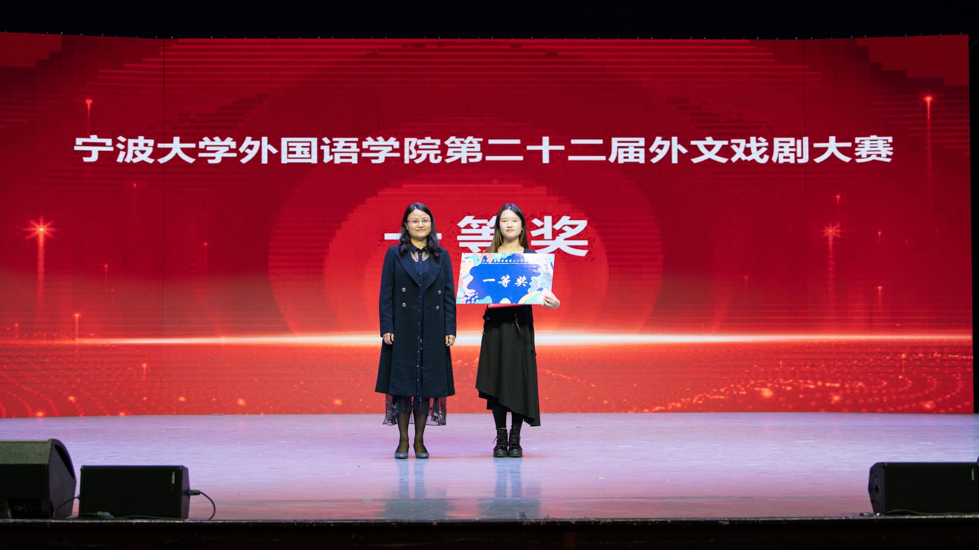 最终,日语212班「お金を出せ!!!」《抢劫》荣获一等奖,日语223班「長い通り過きる」《走过场》和英语226班die Andere《她者》获得二等奖,英语216班Plagiarism Dispute《抄袭风波》、22级英语师范班The Sound of Music《音乐之声》、英语212班My Love My Life《我的爱,我的人生》和21级英语师范班Choice《选择》获得三等奖。日语系和英语系副主任分别对比赛做了点评,对同学们出色的剧本创意、舞台表演以及口语表达水平给予了高度评价。