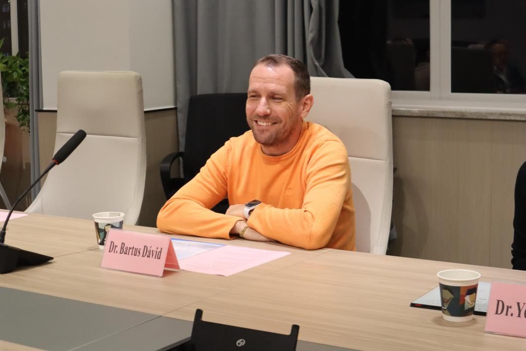 会谈中,罗兰大学文学院院长 Bartus Dávid博士详细介绍了罗兰大学的悠久历史,并重点阐述了其人文学院作为该校第一大学院的显著地位与学科优势。他特别分享了学院在语言学科、人文学科领域的设置,以及这些学科与人工智能、商贸企业融合发展的创新实践。其中,罗兰大学新近开设的“跨文化商务交际”硕士项目引起了与会者的浓厚兴趣。David院长指出,该专业深度融合语言学科与商学学科,旨在培养适应全球化商贸需求的复合型人才,不仅在匈牙利本土发展态势良好,也正积极寻求与海外高校的合作机遇。这一合作方向与啪啪啦